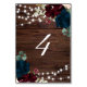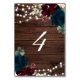Marsala & Navy Flowers Rustic Wood Table 4 Wedding Number