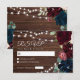 Marsala & Navy Flowers Rustic Wood Wedding RSVP Card