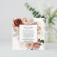 Soft dusty terracotta orange is definitely this Fall's It colour. Pair it with deep marsala red and blush pink and you have a very trendy and pretty Autumn colour combination. The flowers and foliage create a round frame on a square invitation.