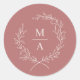 Marsala Simple Elegant Laurel Wreath Monogram Classic Round Sticker