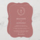 A tasteful and classic choice in wedding invitations, this marsala wine wedding invitation design conveys a simple elegance in its text layout and bracket shape style. A simple open laurel wreath of sketched leaves surrounds the monogram initial of the bride and groom. The elegant yet simple text template is ready to personalise with your wedding details. This invitation is a versatile choice for weddings at any season of the year and for any wedding venue, whether a solemn religious ceremony or a secular type affair at a banquet hall, winery, museum, restaurant, private club, or a rustic wedding outside in nature. This invitation is available in a variety of colours, shape styles (shown her in the notched shape) as well as many different paper types and weights.