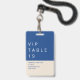 Create your own fun wedding favours and unique place cards for your wedding guests with these Marseille Bleu modern wedding badges. Add the table number and order the quantity for each table individually to use as place cards. The solid ecru back is blank so you can write names or affix pre-printed labels. For larger bulk orders to qualify for more savings, change VIP TABLE XX to something generic like BEST DAY EVER. Then add the bride and groom's names, wedding date and location to the bottom in dark blue on ecru to finish the design. The simple modern design of crisp navy blue, white and soft ecru of these badges blends well for both modern and more casual events. Custom lanyard badges as place cards and wedding favours are a fun and unique way to bring a little something extra to your reception celebration.