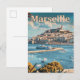 Marseille France Vintage Retro Travel Illustration Postcard
