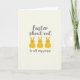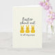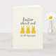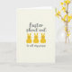 This card features three small, upright bunny-like figures with tall ears, standing side by side on a creamy ivory background 🐰. They’re drawn in sunny yellow with rounded, candy-like shapes, and their tiny black dot eyes and petite smiles give them a friendly, welcoming look. A soft rosy blush on each cheek adds a gentle, affectionate tone, like close friends sharing a quiet joke. Near the top, a light grey greeting appears in a loose, hand-drawn style, centered above the characters. The spacing leaves plenty of open background, keeping the focus on their faces and the sweet togetherness in their lineup 🐇. Near the bottom, a second line of light grey text sits below them, mirroring the top line and balancing the layout. The trio remains centered in the mid-ground, with the yellow figures standing out against the pale backdrop and the grey lettering floating above and below.