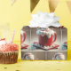 A large marshmallow designed as a snowman with a Santa hat sits atop a red mug filled with creamy foam