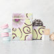 A repeating pattern of Marshmallow flowers and Marshmallow puffs in soft pinks and creams with a deep magenta swirl background. A fun play on word design for any occasion!