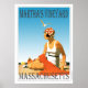 A retro poster that never was until now. A redo of an old poster that should have been. Martha's Vineyard on the Beach in retro style from the art deco era. Bright colours with a woman on the beach under a blue sky.