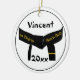 Customise the unique Martial Arts First Degree Black Belt Round Ornament with the name of your martial artist and current year. Create a custom black belt gift to commemorate a 1st Dan black belt test or exam. Suitable for all martial arts including karate, taekwondo, kung fu, ju jitsu and judo. This one of a kind martial arts sports ornament features a digitally enhanced photograph of a martial arts black belt with one gold bar on the front with the words Black Belt Club on the back.