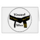 Customise the Martial Arts 4th Degree Black Belt Note Card with the name of your martial artist athlete and date. Create your own unique personalised card for any occasion including congratulations, fourth degree black belt test or exam invitations, happy birthday etc. It features a blackbelt design with four gold bars in a circle with a white background.