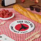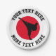 Martial arts kid's karate Birthday party plates. Paper party supplies for themed Birthday party. Disposable fun dinner party supplies printed for children, instructor, teacher, sports club etc. Personalised text and customisable background colour. Add personalised name, school name, funny quote, slogan or monogram. Red hot rising sun with silhouette of fighter. Also great for other asian fight sports like ju jitsu, taekwondo, judo, aikido, kickboxing, jiu jitsu, muay thai etc. Use for cake , dessert, treats, sweets and other food. Small and large size.