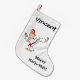 Personalise the cute Martial Arts Merry Kick-Mas Christmas Stocking with the name of your martial artist. This unique xmas stocking features a funny cartoon of a martial artist kicking while wearing a red santa hat and white uniform with a red belt tied around his waist. Suitable for all martial arts including karate, taekwondo, tkd, tae kwon do, kung fu, judo etc.