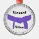 The Martial Arts Purple Belt Premium Round Premium Ornament can be created with the name of your martial artist and current year. Create a personalised martial arts gift to congratulate and commemorate a belt rank promotion test or exam. This one of a kind custom martial arts sports ornament features a purplebelt design with a white background.