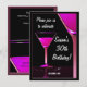 A graphic illustration of blue martini cocktails on a Birthday Party invitation. The invitation has text templates for your personalisation. ©2014charmainepaulson