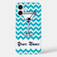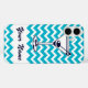 This trendy blue phone case features a icon of a martini in a glass with an olive! The background features a repeating teal and white zig-zag chevron pattern with a white area featuring your own name in a blue script font! Fill in your own name in the personalise it section! Open the full editor to change the chevron colour!