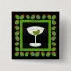Have fun wearing this badge pin created with original art of an olive martini drink on black background with a green border surrounded by green olives with a red. The drink is white and outlined with grey (grey) lines and has two olives. This original hand painted art is by Phyllis Dobbs and coordinates with other dirth martini products and other retro drink art. Great gift idea for someone who loves martini drinks. Fully customisable.