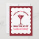 Ask your Valentine in style with this playful and chic martini-themed Valentine’s Day card! Featuring a vibrant burgundy and blush pink design with the phrase “I have one TINI question,” this card blends modern wit with a whimsical flair. The martini glass adorned with heart-shaped garnishes adds a touch of romance and sophistication. Perfect for anyone who loves clever wordplay and contemporary Valentine’s aesthetics, this card is a unique way to pop the question: “Will you be my Valentine?”