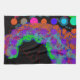 I painted a silhouette portrait of a girl with a colorful funny hat and shoulder length hair.