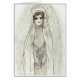 A beautiful black and white pencil sketch of Mary in the Grotto holding a small bouquet of flowers in her hands.