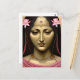 Beautiful Mary Magdalene carved of gold wood wearing a pink robe and with lotus flowers in her hair AI generated art