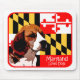 Graphic art depiction of a Beagle dog against the backdrop of a stylised Maryland flag