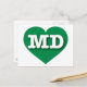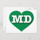 This postcard features a vibrant green heart containing the bold, white, upper case letters MD, the official abbreviation of Maryland, the old line state. The reverse side of the post card is blank, awaiting your customised text or handwritten sentiments.