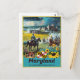 Embark on a journey through Maryland's storied past with the Maryland Historical Surrealism Postcard, a visual masterpiece that captures the essence of the Old Line State's iconic symbols and historic landmarks. This captivating design features the exhilarating sport of jousting, the bold state flag, and the vibrant Black-eyed Susan flower. Adding layers of depth and intrigue, the postcard showcases surreal illustrations of the formidable Fort Frederick and the hallowed grounds of The Monocacy Battlefield. The Maryland State motto weaves seamlessly through this intricate tableau, offering viewers a poignant glimpse into the state's enduring legacy, cultural heritage, and martial valour.