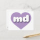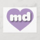 This postcard features a shapely and vibrant lavender heart containing the bold, white, rounded lower case letters md, a playful abbreviation for Maryland, the old line state. The reverse side of the postcard is blank, awaiting your customised text or handwritten sentiments.