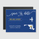 You chose a special place for your wedding. Now it's time to celebrate it with this keepsake save the date magnet card, featuring a silhouette map and a tiny plane headed to your destination. To move the heart to the place of your wedding, click personalise and then "customise further."