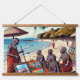 Capture the vibrant culture and stunning scenery of Zanzibar with our Masai Selling Painting on the Beach Wall Hanging. This tapestry features a detailed and colourful depiction of a Masai artist selling their work along the serene shores of Zanzibar Island. The intricate design and rich colours bring to life the unique blend of traditional Maasai art and the beautiful coastal landscape, making it a perfect piece to add warmth and cultural elegance to your space.