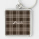 Nice, masculine brown and beige plaid keychain. Add your name to personalise. Nice gift for him!