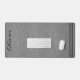 This stylish desk mat features a light grey denim print background, vertical script name in black and three accent lines for balance. Easily change or remove name using the Template provided. The 31.5" x 15.5" desk mat is made from durable 3mm thick neoprene material with polyester top, an anti-slip backing and the edge is hemmed. See "About This Product" at side for more information.
