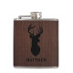 Masculine Hunter Buck Deer Design Name Monogram Flask.