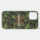 Custom army themed iphone 12 case featuring a camouflage background, your initial in a 3D effect, and name in a boyish script font.