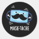 Mask-tache Funny Mask Moustache Pun Dark BG Classic Round Sticker