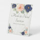 Masks & Hand Sanitizer Blue, Peach Floral Wedding Pedestal Sign