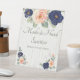 Create a sign to let wedding guests know about the face masks and hand sanitizer station at your wedding, or give them other special instructions. This sign is ready to be customised with your own message in elegant lettering and features pretty illustrations of flowers in navy blue and peach set against a light coloured woodgrain background for a rustic, but pretty look.