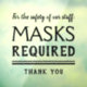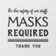 Customise any or all text: "For the safety of our staff: / Masks Required / Thank You" window cling design with line accents. Stylish, yet serious typography. Optionally, personalise the colours of any or all elements to match your business/logo.