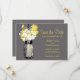 Perfect for a country style wedding or maybe you just love Mason Jars! Mason Jar hanging on a hook filled with country wildflowers. A Cool Charcoal Grey background against the hanging Mason Jar and wildflowers in colours of yellows and white daisies. If you have any questions on this design or want a colour change please email me paula@labellarue.com Also check for the RSVP, RECEPTION and GUEST SEATING Cards to match!