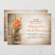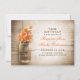 beautiful rustic save the date cards with distressed wood background and mason jar with orange colour flowers . I suggest a beautiful linen texture paper for this design.