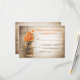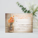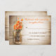 beautiful rustic wedding RSVP - wedding reply cards with distressed wood background and mason jar with orange colour flowers . I suggest a beautiful linen texture paper for this design.