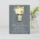 Wedding Rehearsal Dinner Announcement. Background in Medium Grey Rustic Barn Wood design with a Mason Jar filled with white daisies, sunflowers and yellow Billy Balls. If the colour scheme is not what you wanted please let me know and I'll recreate that for you but please contact me before placing an order. Email paula@labellarue.com Happy Wedding Planning!