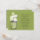 Perfect for a country style wedding or maybe you just love Mason Jars! Old vintage Mason Jar filled with white daisies against a Blooming Spring Green background. If you have any questions on this design or want a colour change please email me paula@labellarue.com Also check for the RSVP, RECEPTION and GUEST SEATING Cards to match!