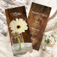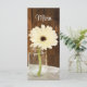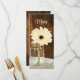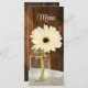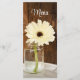 Customize the elegant Mason jar and White Daisy Country Wedding Menu with the details of the meal that you will serve at your informal ranch style bridal shower luncheon, marriage reception dinner or wedding brunch by adding the salad or first course, entree or second course and dessert or third course. This charming custom rustic chic menu features a quaint digitally enhanced floral photograph of a glass canning jar filled with a white daisy flower blossom and a brown weathered barn wood background. Perfect for your casual barn party celebration event.