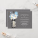 Perfect for a country style wedding or maybe you just love Mason Jars! Mason Jar hanging on a hook filled with country wildflowers. A Cool Charcoal Grey background against the hanging Mason Jar and wildflowers in colours of blue and white daisies. If you have any questions on this design or want a colour change please email me paula@labellarue.com Also check for the RSVP, RECEPTION and GUEST SEATING Cards to match!
