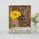 Customise the rustic chic Mason Jar and Yellow Daisy Country Wedding Menu with the details of the meal that you will serve at your casual yet classy bridal shower luncheon, marriage reception dinner or post wedding brunch by adding the salad or first course, entree or second course and dessert or third course. Personalise it with the names of the bride and groom, venue location and event date. This charming wedding menu features a digitally enhanced floral photograph of a glass canning jar filled with a yellow daisy flower blossom and a brown weathered barn wood background. Perfect inspo for an informal ranch or farm style barn party celebration event.