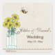 A whimsical, summer-themed, sticker that's sure to delight everyone! The off-white canvas background has a teal mason jar filled with sunflowers and tied with a string. A lazy little bee circles the flowers. The bee can be dragged to any location, made larger or smaller or eliminated.