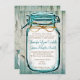 These rustic wedding invitations have a teal turquoise aqua blue tinted mason jar with a twine bow design on top of a distressed barn wood background has chipped paint and a aqua blue hue to it. The twine bow and barn wood are just printed designs. This is a flat printed invitation, with full colour printing on both sides at no additional cost. The back has the weathered barn wood background and a small mason jar in the corner with the word "Love" in script. Just enter your wedding invitation wording in the template spots or use the "Customise It" button to move things around, change the font colour or style, or add more lines of text. These are excellent country wedding announcements for couples who are getting married at a barn wedding venue or any country style wedding that will be decorated with mason jars. Matching mason jar and barn wood RSVP response cards available separately. These would also be nice for a western wedding. Discount Sale Prices when you order more than 50 invitations.