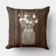 Fun mason jar vases filled with flowers, on brown barn wood backgrounds, create lovely square pillows to adorn your sofa or bed in your country or farmhouse themed home. By Monkey Business Graphic Design, 2018.