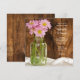 Invite guests to a pre marriage party honouring the bride and groom with the charming Mason Jar and Pink Daisies Country Barn Wedding Rehearsal Dinner Invitation. This casual yet classy custom rustic ranch style dinner party invite features a quaint floral photograph of a glass canning jar filled with pink daisy flower blossoms and a weathered brown barn wood background. Perfect inspo for an informal barn party celebration event.