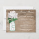 Elegant rustic country Bridal Shower invitations with a cute green and white glass mason jar and white hydrangea vintage flower illustration on a stylish shabby chic brown oak washed out weathered wood grain effect background. Classy, trendy, fashionable modern invites perfect for spring, summer, fall / autumn and winter showers. All of the text can be easily customised to meet your needs and you can change the font style, colour and size of font if you desire. If you need any assistance customising your product please contact me through my store and I will be happy to help. PLEASE NOTE: All invites on Zazzle have flat printed images.